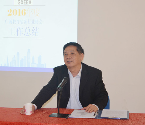 廣西教育裝備行業(yè)協(xié)會(huì)陳鐵華會(huì)長(zhǎng)在會(huì)上做了2016年度工作總結(jié)和下一年度工作計(jì)劃報(bào)告,他表示,2016年協(xié)會(huì)基本完成各項(xiàng)工作任務(wù)目標(biāo),并對(duì)這一年來上級(jí)領(lǐng)導(dǎo)和各成員單位對(duì)協(xié)會(huì)各項(xiàng)工作的支持表示衷心感謝!隨后,陳會(huì)長(zhǎng)簡(jiǎn)要總結(jié)了這一年來協(xié)會(huì)完成工作情況,并介紹了各項(xiàng)工作取得的成果,特別是最近圓滿完成籌辦第71屆中國(guó)教育裝備展示會(huì)任務(wù),獲得了政府及社會(huì)各界的極大肯定,這與大家的不斷支持和努力是分不開的。對(duì)于即將到來的新一年,陳會(huì)長(zhǎng)做了協(xié)會(huì)工作任務(wù)布署,未來一年,廣西教育裝備行業(yè)協(xié)會(huì)將進(jìn)行機(jī)構(gòu)改革,成立各個(gè)專業(yè)分會(huì),發(fā)展推廣隊(duì)伍,讓企業(yè)全方位參與協(xié)會(huì)工作;不斷加強(qiáng)管理,形成寬松、互動(dòng)、共贏的環(huán)境,建立公正、公平、嚴(yán)明的規(guī)章制度,更好的服務(wù)于企業(yè),促進(jìn)廣西教育裝備行業(yè)良好發(fā)展。最后,陳會(huì)長(zhǎng)對(duì)南寧千年工藝股份有限公司、南寧千帆教學(xué)科技有限公司給予本次會(huì)議的大力支持表示感謝,并祝愿協(xié)會(huì)各成員單位事業(yè)興旺發(fā)展!