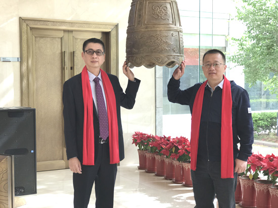 總公司董事長(zhǎng)劉東幸和副董事長(zhǎng)施兵共同敲響了掛牌銅鑼,共同見(jiàn)證了這具有歷史意義的一刻。