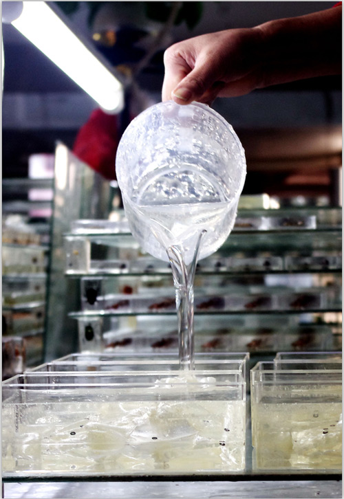 3、標(biāo)本體放入透明模具、添加樹脂材料進(jìn)行封埋