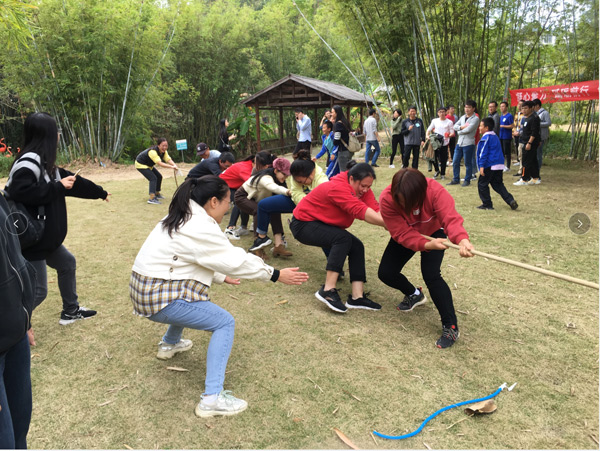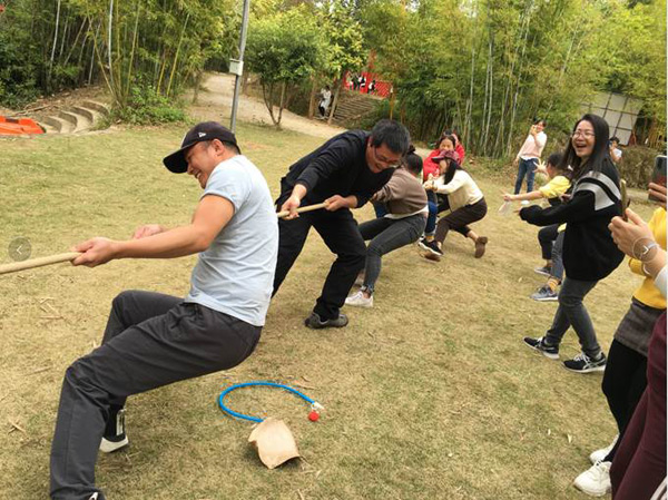 懷著激動的心情,經過短暫的車程后,大家于10:00左右來到本次活動的目的地--長龍歡樂谷山莊。首先,分組進行了豐富多彩的體育運動,有六人單腳跳、運輸氣球、拔河等項目。在運動中,大家團結協作、歡聲笑語,平日里高強度的工作壓力被釋放一空;顒永送轮g的距離,更增強了集體榮譽感。