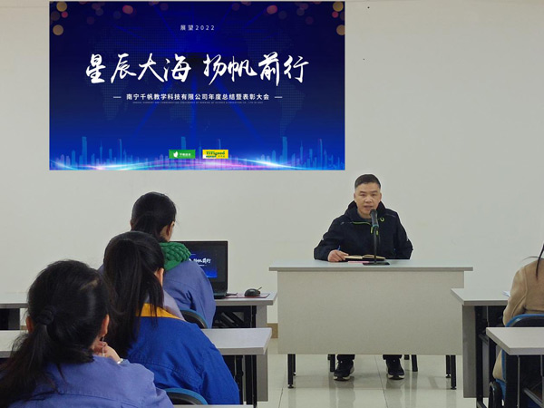 2022年1月28日,南寧千帆教學科技有限公司2021年度總結暨表彰大會隆重舉行,認真總結2021年度取得的各項成績及